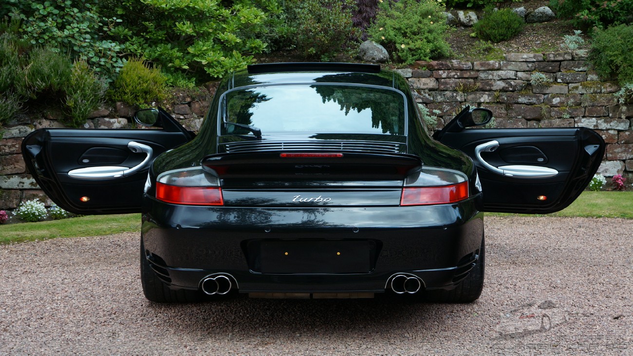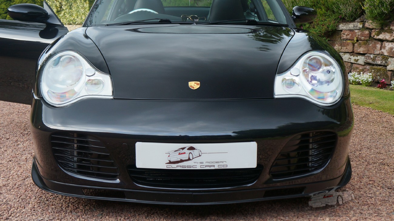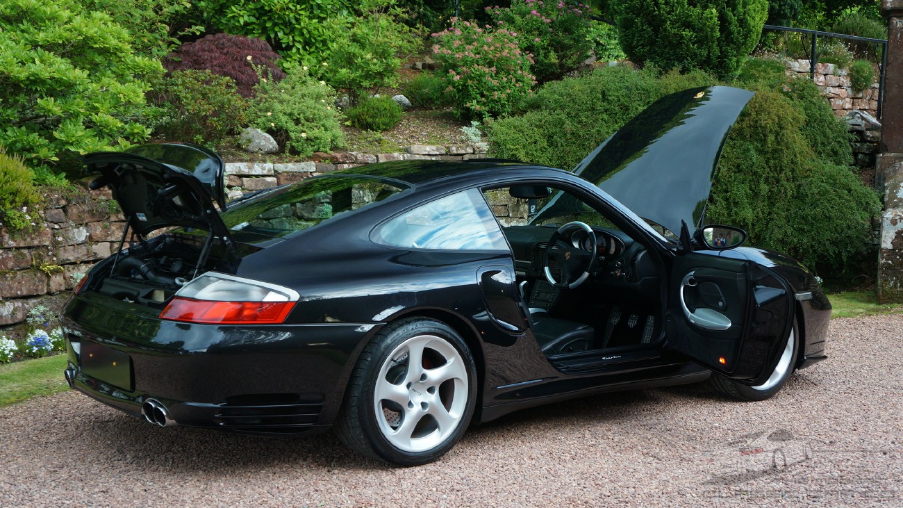 | 2004 996 Turbo Coupe Manual Basalt Black / Black leather 40,100 Miles Option 09991 Exclusive Build Full Comprehensive Porsche Dealer Only History Recent OPC Service, Clutch, Brakes, Tyres & all 5 Radiators Tubi Sports Exhaust Porsche Dealer Health Check Video from July 2017 - Please ask Perfection This is the elusive low mileage, perfect condition car with complete Porsche service history and standout specification options, the type of car that's becoming highly collectable, a premium example and the very best of the model with no compromises whatsoever. Recent service at Porsche (July 2017) and has a clean bill of health, the video inspection presentation from Porsche confirms the car to be in perfect order with and is available on request. This Car Full Porsche main dealer history, it has never been serviced anywhere else and the most recent service was just weeks ago. It has new OEM brakes and new Michelin Pilot tyres. It has a new clutch and all 5 radiators on the car are brand new. The service history is up to date with Porsche and the most recent visit was in July '17. An inspection at this time showed this car to be in perfect order. It has a genuine Tubi stainless exhaust system (cost £3000) which has transformed the mundane stock sound with a deep, loud supercar soundtrack. Utterly amazing!! This is an exclusive build 09991 car with unique specification displaying the contents from the options catalogue of the day, you will unlikely see another exactly like it. A true premium example in every sense of the word. Just look at the enourmous specification below, have you ever seen anything like it! Specification * C16 UK Car * XCA Aluminium dash trim strip * XCB Aluminium instrument surround * XCD Alumimiun centre air vent * XJB Artic Silver Centre Console Tunnel * XMF Leather covered upper centre console * XPG Aluminium 3 spoke steering wheel * X54 Stainless tailpipes * X70 Door entry guards with Turbo logo * X71 Aluminium instrument faces with Turbo logo * CCT Aluminium finish door storage pocket lids and handles * 342 Seat heating * 437 8 Way electric seat Left * 438 8 Way electric seat Right * 446 Wheel caps with Turbo logo * 538 Seat memory Right * 454 Cruise control * 567 Top tinted windscreen * 635 Park assist sensors * 650 Sun-moon roof * 666 Telephone module for PCM2 * 680 Bose sound system * 692 6 Disc CD changer Becker * 09991 Manufacture from the exclusive-programme Standard 996 Turbo Spec * Bi Xenon Headlights * Rain Sensor Wipers * Porsche Stability Management * Auto Dimming Mirror * Alcantara Roof Lining * Electric Sunroof * Top Tinted Windscreen Additional Spec * Tubi stainless sport exhuast system (£3000 system) * 996 GT3 RS alcantra gear shifter (996.424.075.91) - Dealer fitted * Turbo insignia behind rear seat (996.551.305.00) - Dealer fitted + More Service & Maintenance Turbo cars require a complete and up to date maintenance record, it's essential. This is exactly what you want to see - complete dealer service records detailing a lifetime of care and pampering presented in a tidy file including service and maintenance receipts, previous MoT's and more. There are six recorded services, it has only ever been serviced by Porsche, last service was recent (July 2017), with Porsche Edinburgh, it is 100% up to date and has a clean bill of health. When Porsche service your car they also carry out an inspection as part of the service. Here they will report on any faults or any consumables that may need replacing and they provide you with a detailed video report. Porsche themselves confirm car is free from any faults and it requires zero expense and this was within the last 100miles. The inspection video from Porsche for this car is available, please ask and we will forward a link. Serviced as follows: 04.06 10,113 Porsche Hatfield 10.08 18,454 Porsche Hatfield 06.11 27,402 Porsche Edinburgh 05.13 32,132 Porsche Edinburgh 06.15 38,373 Porsche Leicester 07.17 40,011 Porsche Edinburgh Recent work includes but not limited to: * OPC Service and Brake fluid (at 40,011 miles) * New Michelin Pilot Sport tyres all round * New Brake discs and pads all round * New A/c Radiators and cooling radiators (all 5 radiators replaced in total) * Air con re-gas * New Clutch (clutch replaced at 38,400 miles) A huge detailed and comprehensive service history file accompanies in a presentation file, full owners pack with all books and two sets of keys with crested leather fobs. All manuals with sat nav discs are present. Everything is there that would come with car when new. 10/10 Wheels & Tyres Alloy wheels are unmarked in their entirety, no kerbs or lacquer peel and the new centre caps are the correct Turbo script items as specified from the factory. The wheels are absolutely flawless with zero marks and appear literally as new and that includes zero dirt on the insides of the rims. Tyres are all new Michelin Pilot Sport PS2's which is the enthusiasts choice of tyre for the car. Peer inside the wheels to see flawless red calipers and new brake discs on each corner. 10/10. Condition Beautiful in Basalt Black metallic, the coachwork is superb and exudes a softness with a clear depth to the shine. Absolutely stunning, highly detailed and finished with the best waxes. The front bumper has superb recent unblemished and chip free finish and an immaculate undamaged lower splitter with no marks Peering inside the front air-dams reveals lovely new radiator and condensers. This immaculate theme continues around the car, all is in superb order. Summary Simply put, you will not find better. You may find as-good but only if you are very lucky. This is a premium example that requires no expense. One could pay a whole lot less for a 996tt, sure.. but you'll need to spend so much on it to get it to this level if you could ever get it there, then what would you have - a car with more many miles in much lesser condition and likely a lot less spec. There is total peace of mind Porsche ownership on offer her