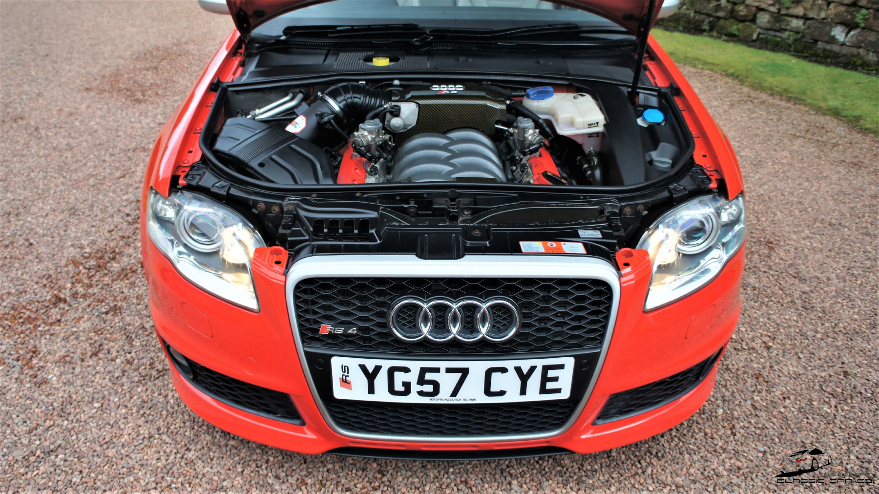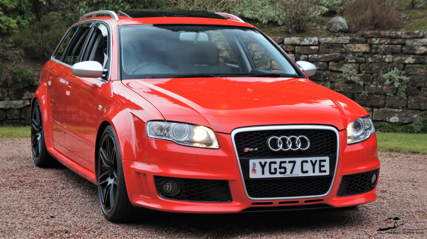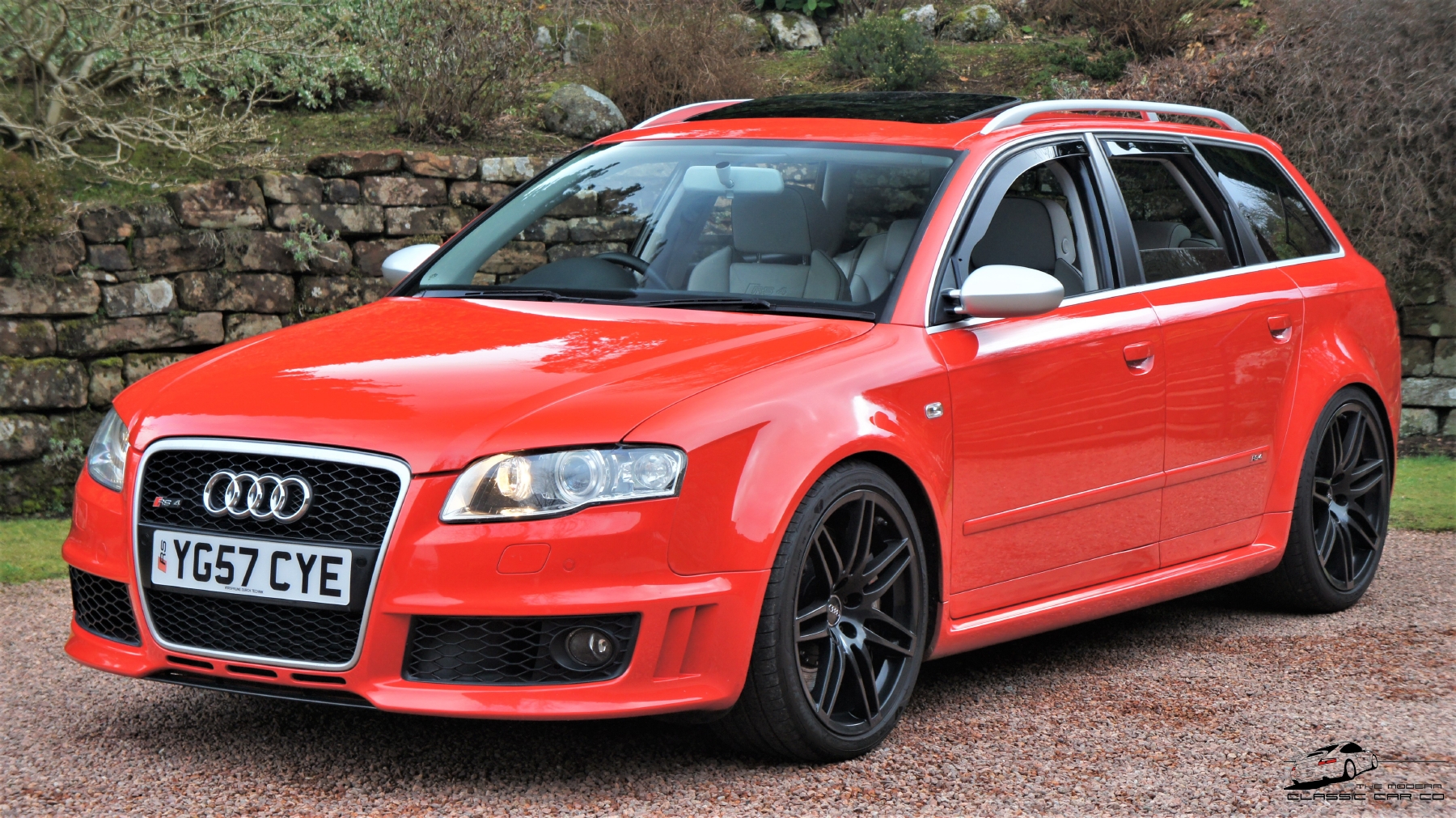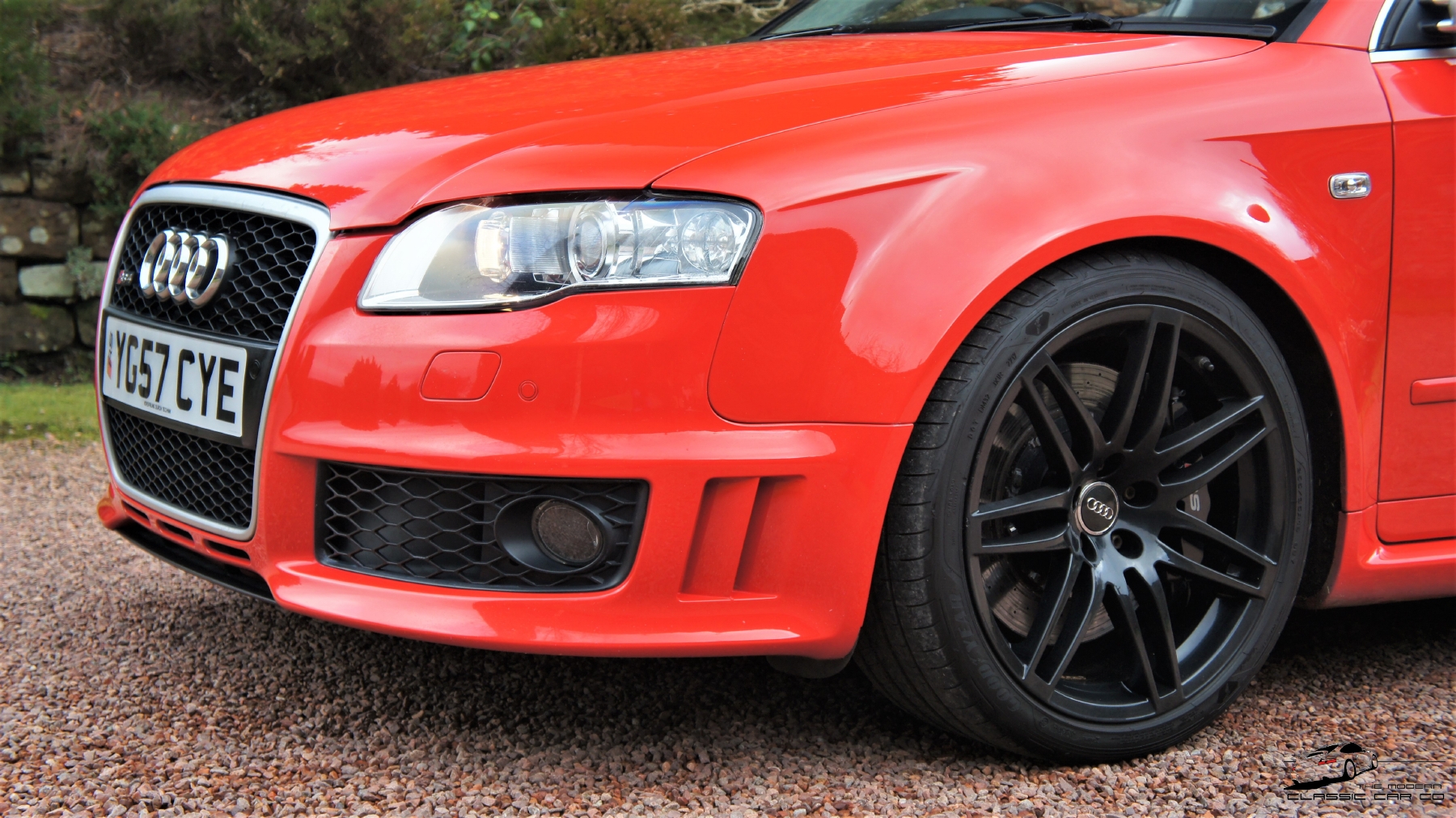 2007 57 AUDI RS4 (B7) AVANT QUATTRO 6 SPEED MANUAL Brand New Engine From Audi 20,000 Miles Ago High Factory Specification Full Service History - £24000 of Bills 69000 Miles Milltek Exhaust Eibach Springs Bilstein Shocks Cost 60K New This Car The RS4 Avant is a beautifully executed car, its always feel alert and agile, instantly responsive and supremely powerful, in estate form its very desirable indeed, a real taskmaster. Key to the appeal is the time proven engine, whether pottering at 2000 rpm or right up top at 8200 rpm, its just fantastic everywhere, this coupled with the driver input required from the 6 speed manual and its a vehicle that is very difficult to trump in any area. This is among the last of the proper analogue V8 manual cars ever made, the likes of which we will never see again, the political climate dictates that vehicles such as these belong to an era that was the Golden age for high performance drivers cars. It has been extremely well serviced and sits on quality new tyres and genuine brake components which in my experience is always the first thing to get skimped on. Striking looking Avant with a complete story with nothing missing, certainly a future classic these models are drying up and have stopped depreciating. At its finest in Deep Misano Red Pearl, this being a difficult and rare colour to source. Key to this cars appeal are the subtle performance enhancements that take it to the next level in terms of sound and handling, (detailed below). The added peace of mind is present as its been fitted with a brand new engine by Audi dealer at 49000 miles, so the engine has done less than 20,000 miles. As such this example is worth a premium, fortunes have been spent, the most recent owner was a serial car enthusiast spending fortunes maintaining and honing it. Service History & Recent Expenditure - 8 services - £24000 Worth Of Bills The service book is fully stamped, I have checked virtually every aspect of it. Clear read on the diagnostic, no fault codes and no faults. All service stamps are pictured. Some of the most recent major expenditure is detailed below. There is a complete spread of paper bills complimenting the service stamps right back to when new together with a full MOT history. The total of documented bills amounts to over £24000. - Matching Goodyear Eagle F1 tyres all round - New front discs and pads - New rear discs and pads - Air con regas - Full graphic wheel alignment - Alloys professionally restored New Engine Fitted By Aberdeen Audi - Cost £15300 In October 2013 the owner was unfortunate enough to have the oil cooler pipes burst dumping all the oil out the engine. The vehicle was recovered and taken to the dealer who replaced the oil cooler and the pipes only to find the engine knocking. Instead of rebuilding anything the decision was made to have a brand new engine fitted at a cost of over £15000. This was at 49572 miles so the new unit has not even covered 20,000 miles. Needless to say it performs like a new car. This is fully documented and I have pictured the paperwork relating to it in the gallery. The RS4 The cars compact executive body subtly underplays its remarkable performance potential. A compact 4.2-litre eight-cylinder powerhouse that delivers a peak output of 420bhp with Zero to 62mph acceleration dispatched in 4.8 seconds, onto an electronically-limited top speed of 155mph. However its far from just being a one-dimensional car, it provides a comfortable and functional cockpit, fine-quality materials and upscale conveniences. Its trump card for me is its adaptability, it sounds utterly fantastic, and when the weather turns foul its has tractional qualities that are truly inspiring for a driver. The RS4 is a car that makes sense in such a wet country as ours. With all wheel-drive traction and a whole raft of electronic safety measures, its effortlessly secure, a combination of big power, damp roads and an enthusiastic approach wont phase it at all. Don't miss this opportunity, examples such as this rarely become available on the used market. As one would expect, with a stock 420-horse V8, performance is thrilling whether highway or winding back roads, crucially this one has not been driven hard, it has covered little mileage and significantly has been well treated and well serviced, an expensive car new and it has not been skimped on with 3 previous owners that were prepared to spend. High Specification Very highly appointed, the abundance of specification is not all standard on the RS4 model. The Milltek exhaust is a real treat, its non resonated so its not brash, just deep. Other enhancements have been added as listed below, the main event is the suspension upgrade which is extremely comfortable and inspiring though note that the car already had the factory option Super Sports suspension. Optional Specification Misano Red Pearl Super Sports suspension DVD Satellite Navigation with colour screen Adaptive lights Leather Silk Nappa Electric tilt/slide glass sunroof Front centre armrest 6 Disc CD changer Silver dash inserts Isofix front and rear RS4 branded carpet mats Privacy glass Aftermarket Added Spec Milltek exhaust system (sounds incredible) Bilstein upgraded shocks Eiback lowering springs Ghost logo laser projected emblems under all doors Alloys finished in Satin Black Heko wind deflectors Branded plates Standard Specification 3 point seat belts with pre-tensioners Acoustic parking system ? front and rear Alloy wheels ? 9J x 19 7-arm double-spoke with 255/35 R19 Y tyres Aluminium foot pedals Anti-lock Braking System (ABS) Anti-Slip Regulation (ASR) traction control Anti-theft device Thatcham Category 1 Approved Body styling in body colour BOSE sound system - dynamic driving-noise compensation & 190 Watt output Concert MP3 file compatibility and 10 loudspeakers Cross-drilled brake discs Cruise control system Digital clock with date Driver and front passenger two-stage airbags Drivers Information System (DIS) with RS4 welcome 