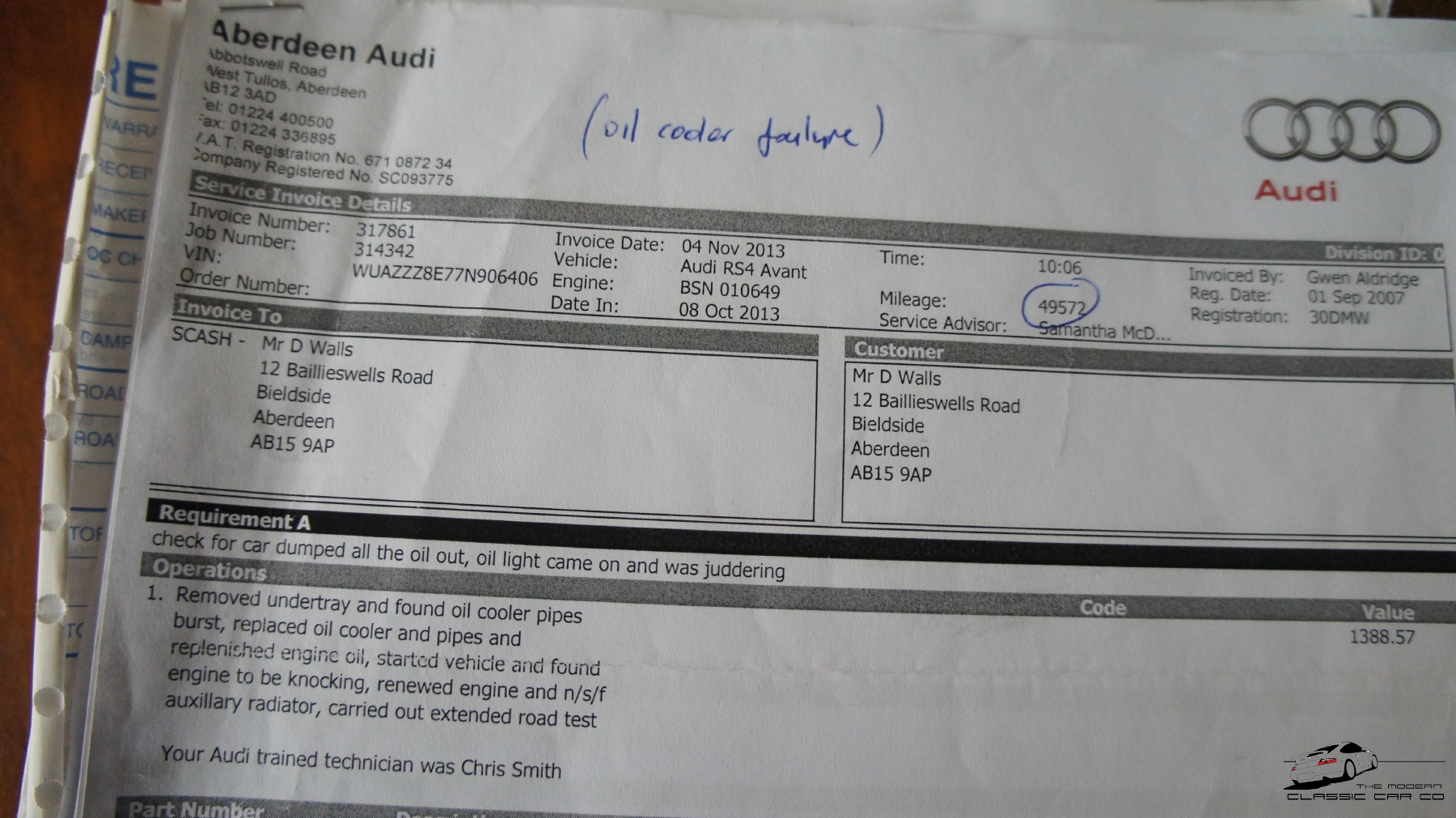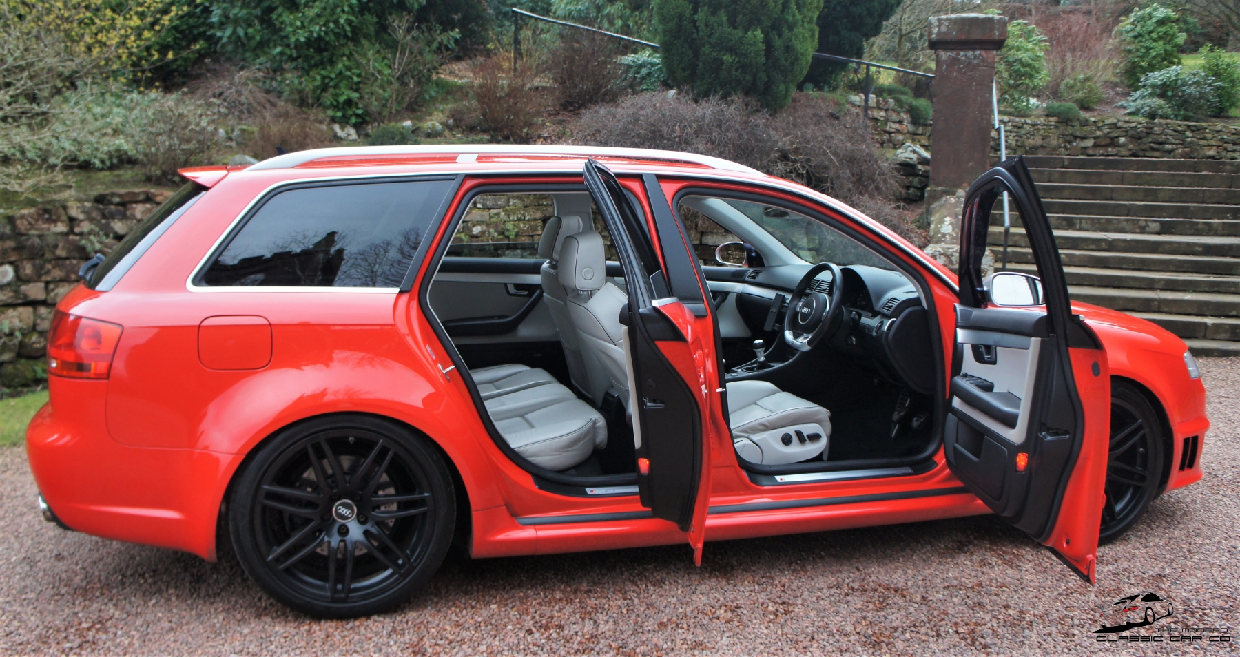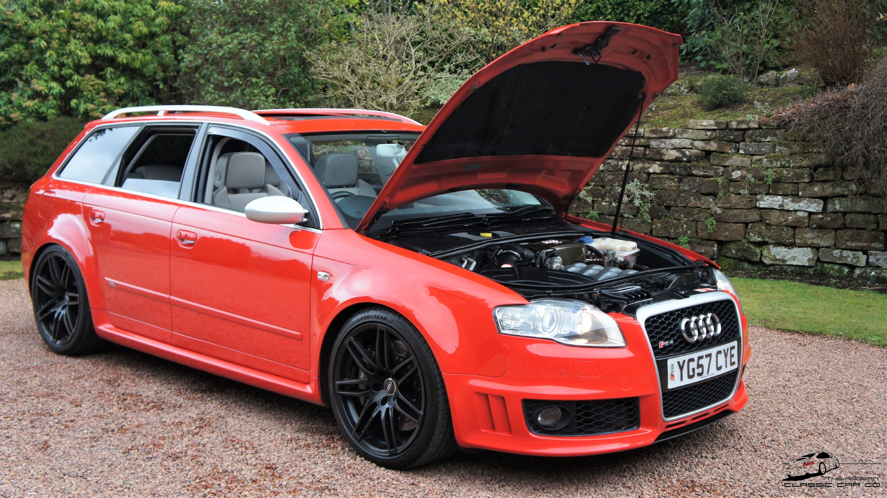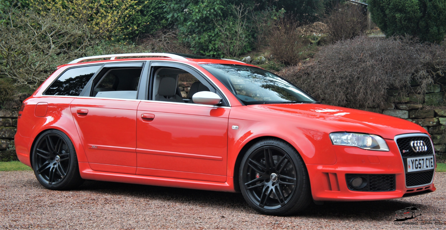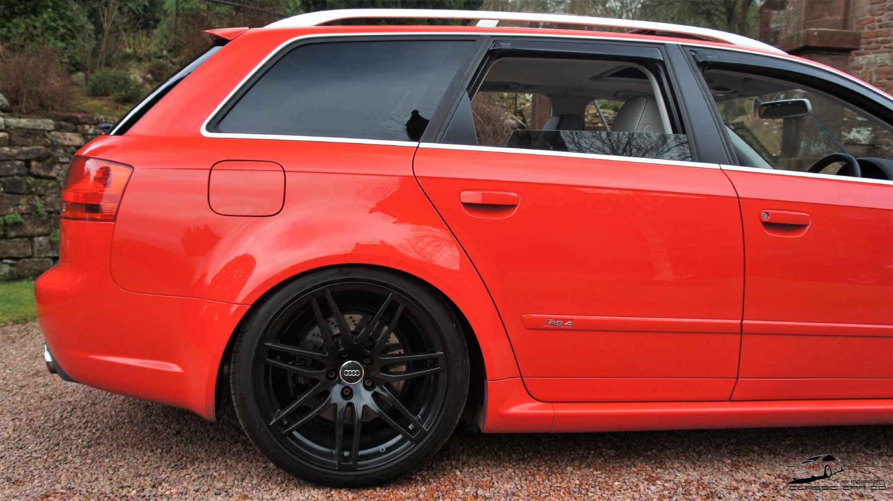 2007 57 AUDI RS4 (B7) AVANT QUATTRO 6 SPEED MANUAL Brand New Engine From Audi 20,000 Miles Ago High Factory Specification Full Service History - £24000 of Bills 69000 Miles Milltek Exhaust Eibach Springs Bilstein Shocks Cost 60K New This Car The RS4 Avant is a beautifully executed car, its always feel alert and agile, instantly responsive and supremely powerful, in estate form its very desirable indeed, a real taskmaster. Key to the appeal is the time proven engine, whether pottering at 2000 rpm or right up top at 8200 rpm, its just fantastic everywhere, this coupled with the driver input required from the 6 speed manual and its a vehicle that is very difficult to trump in any area. This is among the last of the proper analogue V8 manual cars ever made, the likes of which we will never see again, the political climate dictates that vehicles such as these belong to an era that was the Golden age for high performance drivers cars. It has been extremely well serviced and sits on quality new tyres and genuine brake components which in my experience is always the first thing to get skimped on. Striking looking Avant with a complete story with nothing missing, certainly a future classic these models are drying up and have stopped depreciating. At its finest in Deep Misano Red Pearl, this being a difficult and rare colour to source. Key to this cars appeal are the subtle performance enhancements that take it to the next level in terms of sound and handling, (detailed below). The added peace of mind is present as its been fitted with a brand new engine by Audi dealer at 49000 miles, so the engine has done less than 20,000 miles. As such this example is worth a premium, fortunes have been spent, the most recent owner was a serial car enthusiast spending fortunes maintaining and honing it. Service History & Recent Expenditure - 8 services - £24000 Worth Of Bills The service book is fully stamped, I have checked virtually every aspect of it. Clear read on the diagnostic, no fault codes and no faults. All service stamps are pictured. Some of the most recent major expenditure is detailed below. There is a complete spread of paper bills complimenting the service stamps right back to when new together with a full MOT history. The total of documented bills amounts to over £24000. - Matching Goodyear Eagle F1 tyres all round - New front discs and pads - New rear discs and pads - Air con regas - Full graphic wheel alignment - Alloys professionally restored New Engine Fitted By Aberdeen Audi - Cost £15300 In October 2013 the owner was unfortunate enough to have the oil cooler pipes burst dumping all the oil out the engine. The vehicle was recovered and taken to the dealer who replaced the oil cooler and the pipes only to find the engine knocking. Instead of rebuilding anything the decision was made to have a brand new engine fitted at a cost of over £15000. This was at 49572 miles so the new unit has not even covered 20,000 miles. Needless to say it performs like a new car. This is fully documented and I have pictured the paperwork relating to it in the gallery. The RS4 The cars compact executive body subtly underplays its remarkable performance potential. A compact 4.2-litre eight-cylinder powerhouse that delivers a peak output of 420bhp with Zero to 62mph acceleration dispatched in 4.8 seconds, onto an electronically-limited top speed of 155mph. However its far from just being a one-dimensional car, it provides a comfortable and functional cockpit, fine-quality materials and upscale conveniences. Its trump card for me is its adaptability, it sounds utterly fantastic, and when the weather turns foul its has tractional qualities that are truly inspiring for a driver. The RS4 is a car that makes sense in such a wet country as ours. With all wheel-drive traction and a whole raft of electronic safety measures, its effortlessly secure, a combination of big power, damp roads and an enthusiastic approach wont phase it at all. Don't miss this opportunity, examples such as this rarely become available on the used market. As one would expect, with a stock 420-horse V8, performance is thrilling whether highway or winding back roads, crucially this one has not been driven hard, it has covered little mileage and significantly has been well treated and well serviced, an expensive car new and it has not been skimped on with 3 previous owners that were prepared to spend. High Specification Very highly appointed, the abundance of specification is not all standard on the RS4 model. The Milltek exhaust is a real treat, its non resonated so its not brash, just deep. Other enhancements have been added as listed below, the main event is the suspension upgrade which is extremely comfortable and inspiring though note that the car already had the factory option Super Sports suspension. Optional Specification Misano Red Pearl Super Sports suspension DVD Satellite Navigation with colour screen Adaptive lights Leather Silk Nappa Electric tilt/slide glass sunroof Front centre armrest 6 Disc CD changer Silver dash inserts Isofix front and rear RS4 branded carpet mats Privacy glass Aftermarket Added Spec Milltek exhaust system (sounds incredible) Bilstein upgraded shocks Eiback lowering springs Ghost logo laser projected emblems under all doors Alloys finished in Satin Black Heko wind deflectors Branded plates Standard Specification 3 point seat belts with pre-tensioners Acoustic parking system ? front and rear Alloy wheels ? 9J x 19 7-arm double-spoke with 255/35 R19 Y tyres Aluminium foot pedals Anti-lock Braking System (ABS) Anti-Slip Regulation (ASR) traction control Anti-theft device Thatcham Category 1 Approved Body styling in body colour BOSE sound system - dynamic driving-noise compensation & 190 Watt output Concert MP3 file compatibility and 10 loudspeakers Cross-drilled brake discs Cruise control system Digital clock with date Driver and front passenger two-stage airbags Drivers Information System (DIS) with RS4 welcome 