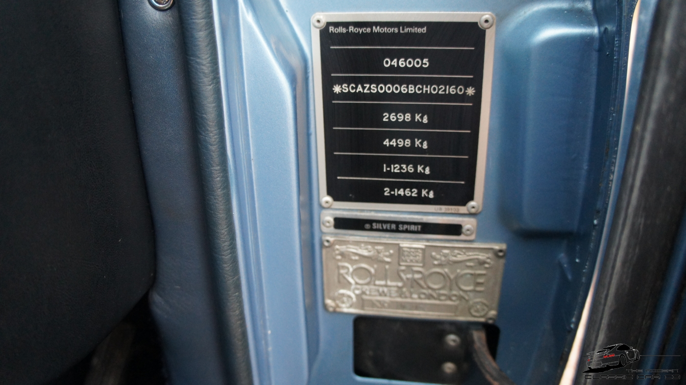 Iconic British Motor Car 30 Stamp Service History Beautiful Condition This vehicle was supplied by Jack Barclay - Berkeley Square, London to its first owner a Mr O`Reilly of Purley in Surrey. This is amongst one of the earliest MK 1 Spirits with the initial car order paperwork showing it was ordered in December 1980 being delivered in the May of 81. Complete with original bill of sale, dealer name plate on inner door sill, the car comes with a full service history and massive history file. SKL 623W retains its supplying dealer sticker on the rear screen and all its original spec right down to the original entertainment systems. The factory sales brochure is present and a whole host of other literature. Specification Highlights - Ocean Blue - Blue Leather hide - Blue Carpets - Wilton over rugs & footstools - Oatmeal headlining - Double coach line in dark Blue - Power Steering - Electric seats - Electric mirrors - Central locking - Blue Spot Blaupunkt Frankfurt stereo - Tinted glass Chassis - SCAZS0006BCH02160 Engine No - 02160 D O R - 21 05 1981 Reg - SKL 623W Servicing & Bills - 30 Service Stamps - Full Paper History Comprehensive paper spread start to finish with a complimenting MOT history. The folder is thick with bills as pictured and is hugely confidence inspiring. In fine working order, in preparation of sale I have just given the vehicle a complete health check. Originality + Other Information This car has been maintained fastidiously by a RR Owners club member for 20 years. A loss of storage following a move with only street parking meant his car became available. It has an agreed valuation in access of £10,000 with Footman James and its been to more Rolls Royce Rally's than its had engine services. The owner was the company Director of Ashbury service station in Manchester whom have a great understanding and sympathy with vehicles of this vintage, and the chap was a real petrol head with the Rolls was one of a few different exotic cars in his collection. Covering little mileage, being lovingly stored and receiving pampered attention throughout the tenure of his ownership. You may buy a cheaper Rolls that will never be a patch on this, or a dearer one which will offer no guarantee to be better. As with any classic purchase condition is everything, and with a Rolls Royce condition and service history are doubly important. Recent Bills The upkeep is everything, and this has been maintained with a virtual open cheque book policy given the long term owner had considerable facilities and expertise to hand. He owned the car for the last 20 years and it has always been dry stored in his ownership. Some historic bills are detailed below and currently there are no outstanding matters at all. It had a service with every mot irrespective of the mileage but the previous long term owner was trying to preserve the service book as it was running out of pages. In 2012 he stopped stamping it, it has 7 of the 37 pages left to be stamped, though actually has had 4 other services since 2012 so it should techincally have a 34 stamp history. It always had a genuine RR filter as well. -Starter motor overhaul - brake pads front - Rear main oil seal - 4 new spheres - Brake pump seals - New fuel pump - o/s/r shocker - Rocker gaskets replaced - Brake servo replaced - Alternator reconditioned - Front dampers replaced - oil change & filter on transmission - Suspension turrets refinished - Ignition switch replaced - New heater matrix - Battery replaced - All 4 door cappings stripped & re lacquered - Over mats replaced 10 yrs ago The Silver Spirit Replacing the highly successful Silver Shadow series, and the first to even hint at the use of aerodynamics by the brand. It is the ultimate expression of enhanced comfort and convenience, and as such is a great devourer of distances. Much of what went into the earlier pre 66 cars is still very much present in the Spirit, just a little easier to live with, whilst being immediately recognized as a classic design in the Rolls Royce tradition. The engine is the same biblical 6.8 litre pushrod V8 that served the Shadow and the Silver Cloud III before it. Pushing the go pedal at standstill will elicit an antediluvian sound similar to the rumblings of distance thunder. Tilt the indicator and its the same click clack you heard in your grandfather’s clock. The penny drops the moment you enter the car and look out over a long bonnet that seems as if it was derived straight from the Silver Ghost. Climbing aboard the interior is akin to stepping into the drawing room of a members only gentleman’s club of a world long ago. All these acute experiences make every other so called luxury car feel stupid and pointless by comparison. Also comes complete with the complete chassis card details which is only available for a fee as a Rolls Royce club member. The records give valuable information about the car's original specification: they include the serial numbers of original instruments and major sub-assemblies (so you can see if anything has been replaced). You can check the individual requirements of the original purchaser in every details, this runs onto over 60 pages.. The Drive This Rolls drives faultlessly under way, sounds from wind and road barely infiltrate. This model marks a hugely impressive feat in noise cancelation engineering even by today’s standards. The vehicle is a delight to drive sitting perfectly on all four corners and ensures that you, the driver, are completely removed from the act. Every action feels like a request rather than something you yourself execute. Expecting performance from a Spirit is not only defeating its stately purpose, but it’s like trying to get a rise out of a British butler, he’ll laugh politely but never share in the joke. Its almost like having a polite middle man for everything, whether it’s the long travel of the directional stalk, the friction-free motion of the gear change lever, the ease with which you use your fingertip